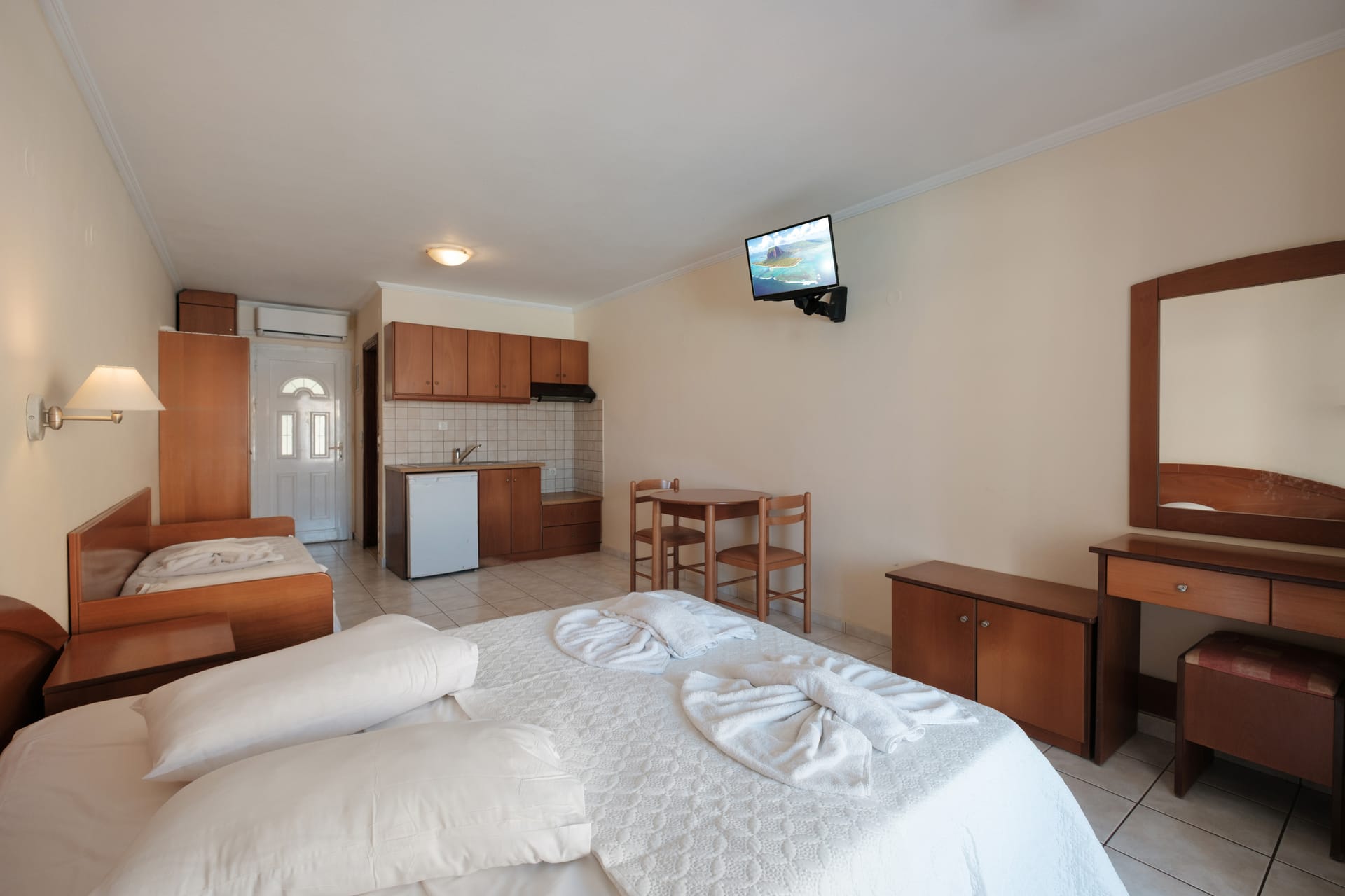Practical and bright, our Standard Studios offer ~24 m² of space with a double or twin set up and the option for one extra bed. Expect a mini fridge, tea & coffee set, air conditioning and Wi Fi. Housekeeping three times weekly.
